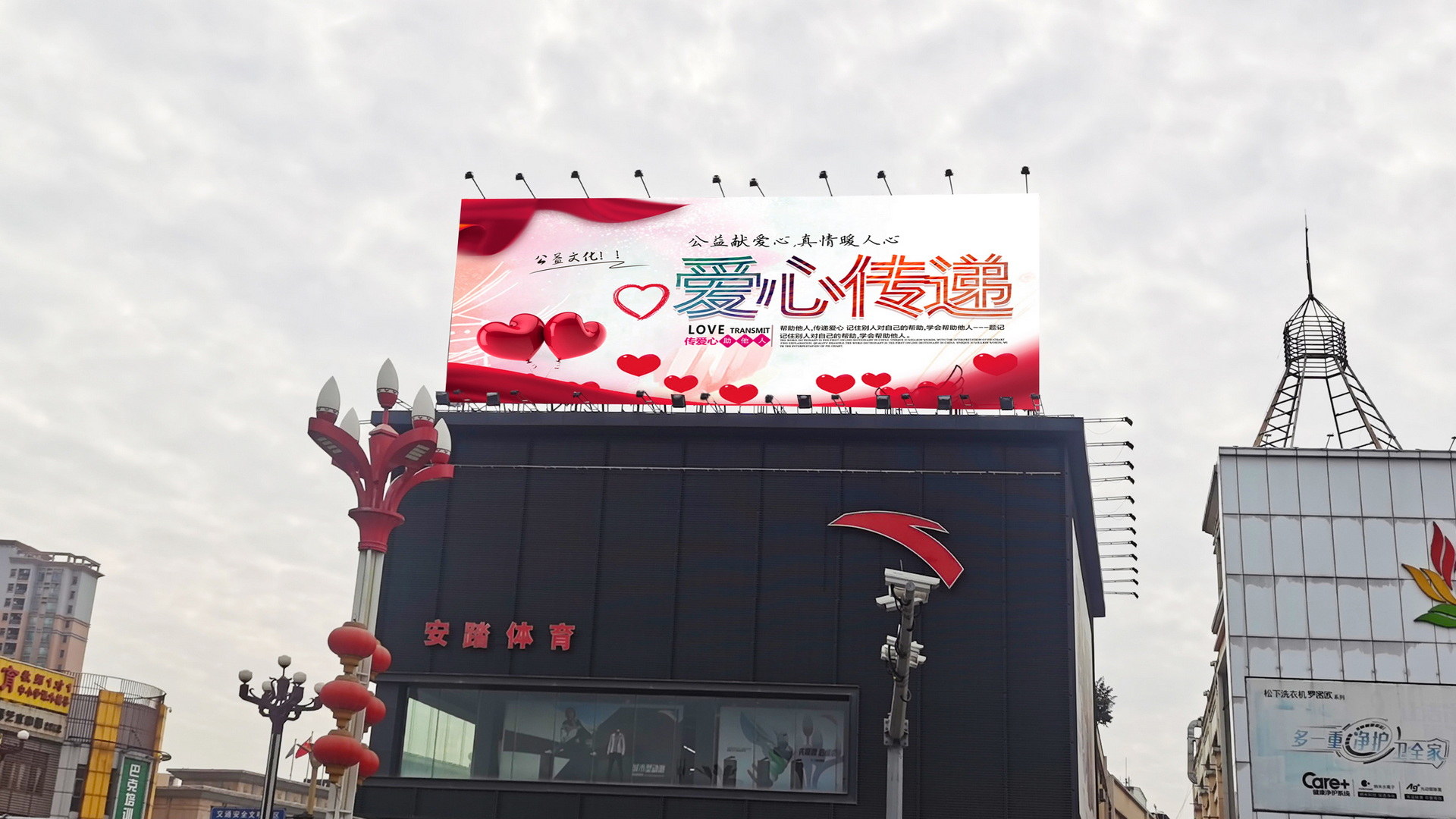 大朗镇长盛南路与美景中路交汇处(安踏楼顶)