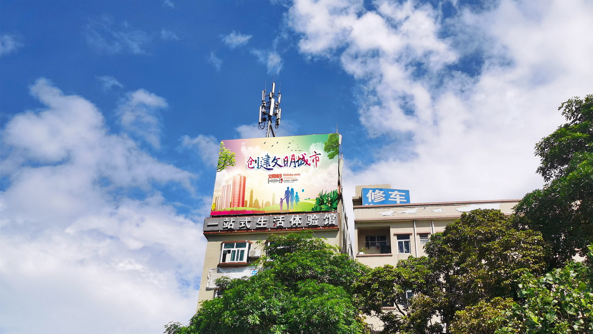大朗镇长盛南路与美景中路交汇处(安踏楼顶)